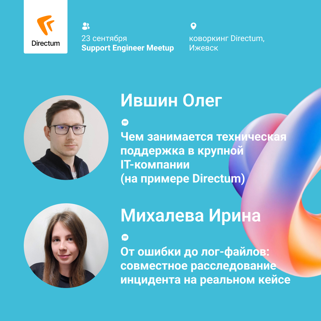 23 сентября в 18:30 (иж) ждём всех зарегистрировавшихся на митап для специалистов технической поддержки. Место встречи как всегда офис Directum, пер. Северный, 61 (вход справа от основного в здание).